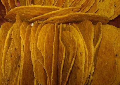 والتوابل , والبودره والسكر والفلفل , ويكون بشكل ناشف ومقرمش .